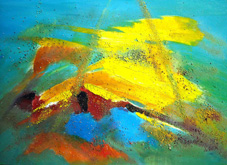 Das Werk: „Blau und Gelb I“ 100 x 70 cm, Mischtechnik 2010, ist eine Farbdarstellung heiterer Emotionen, die mit dem Licht des Himmels verbunden sind.