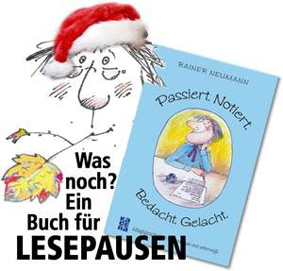 48 heitere, witzige, skurrile, schräge und nachdenkliche Kurzgeschichten. Aufgeschrieben von Rainer Neumann, erschienen im Kadera-Verlag, 112 Seiten. Überraschende Alltagsepisoden von St. Georg bis Shanghai.
