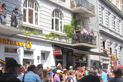 unten: Warten auf die CSD Parade in der Langen Reihe, Foto Barbara Gitschel-Bellwinkel