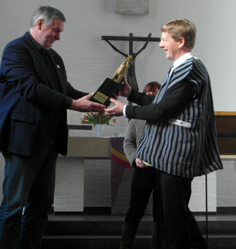 2. Gunnar Marwege erhält den Golden Drachen von Michael Joho, dem Vorsitzenden des Einwohnervereins, Foto: Sabine Skalla