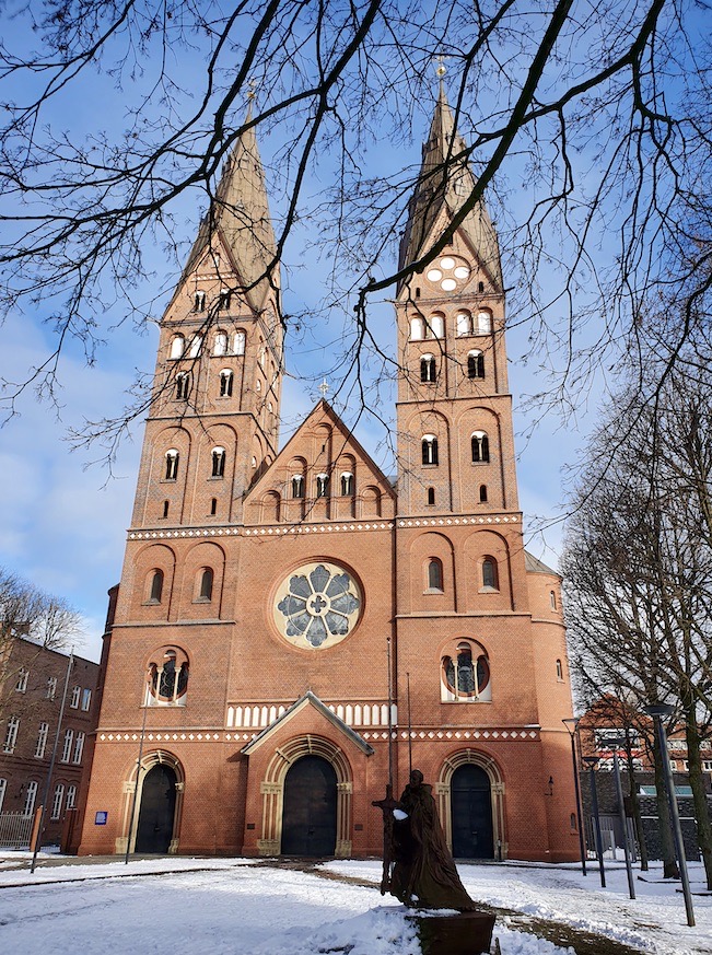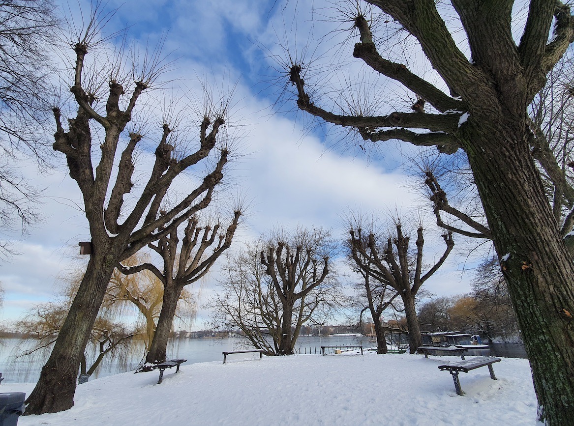Winterimpressionen: am Hansaplatz, beim Mariendom und an der Alster.