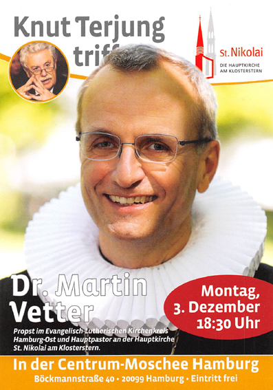 Die Centrum Moschee feiert ihr 50-jähriges Bestehen und lädt herzlich zu einer Veranstaltung mit Knut Terjung und Dr. Martin Vetter, Propst im Evangelisch-Lutherischen Kirchenkreis Hamburg-Ost und Hauptpastor an der Hauptkirche St. Nikolai am Klosterstern ein. Der Programmablauf sieht so aus: