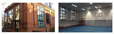 Endlich ist es soweit, das Bauprojekt "Turnhalle der Brecht Schule in der Rostocker Straße" wird am 2.März 2016 zwischen 11.30 und 12.30 Uhr offiziell eingeweiht. Rund 2 Millionen Euro hat die neue Turnhalle gekostet, die aus Platzgründen zum größten Teil unter der Erde errichtet wurde. Auf dem Dach befindet sich nun der Bolzplatz. Die Halle hat behindertengerechte Zugänge, einen Fahrstuhl und schallisolierte Wände im Innenbereich. Die neue Turnhalle steht neben den Schülern der Privatschule