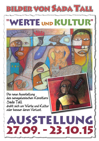 Der senegalesische Künstler Sada Tall zeigt seine Werke zum Thema "Werte und Kultur" im Kulturladen St. Georg. Der Maler verwendet bei seinen abstrakten Darstellungen eine Mischtechnik. Farbenfroh und intensiv beschäftigt er sich mit hochaktuellen Gesellschaftsproblemen wie dem Verlust von Werten. Sada Tall absolvierte sein Kunststudium bis 1994 an der Ecole Nationale des Beaux Arts in Dakar, Senegal. Seitdem hat er regelmäßig an verschiedenen Ausstellungen im Rahmen von Dak\'art teilgenommen und stellt seit 2007 kontinuierlich auch in Deutschland aus.