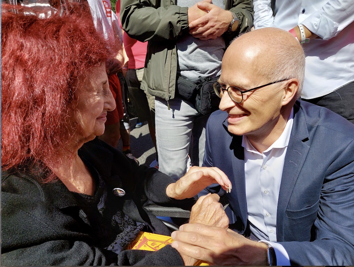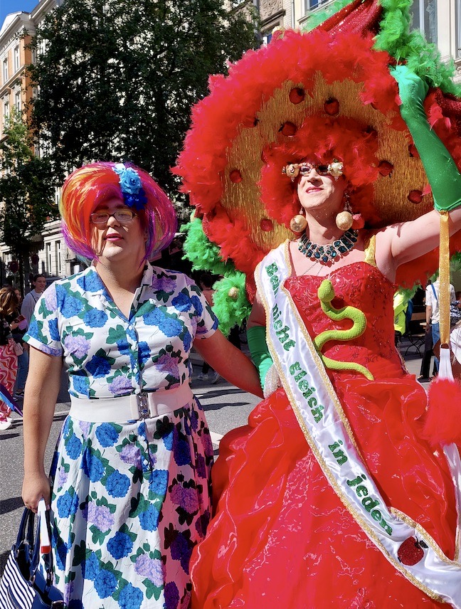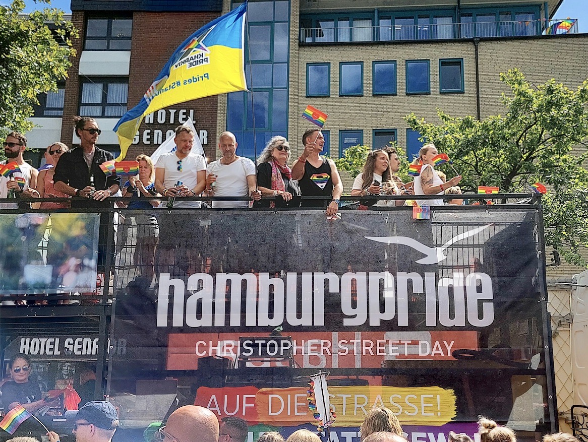 Strahlender Sonnenschein begleitete den CSD Christopher Streetday 2022, der nach zweijähriger Corona-Pause wieder stattfinden konnte. Tausende nahmen die Möglichkeit wahr und unterstrichen mit ihrer Präsenz die aktuellen Forderungen der Community. Die Eröffnung nahm der Erste Bürgermeister Dr. Peter Tschentscher vor und begrüßte am Startbanner eine alte Freundin: Peggy Parnass. Die heimliche Königin des Stadtteils, die auch im Alter meinungsstark und streitbar ist, ließ es sich nicht nehmen, mitten im Getümmel dem