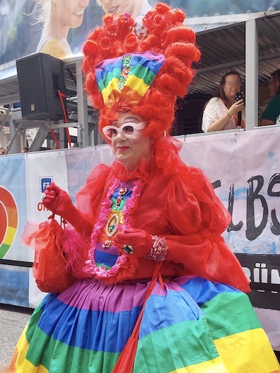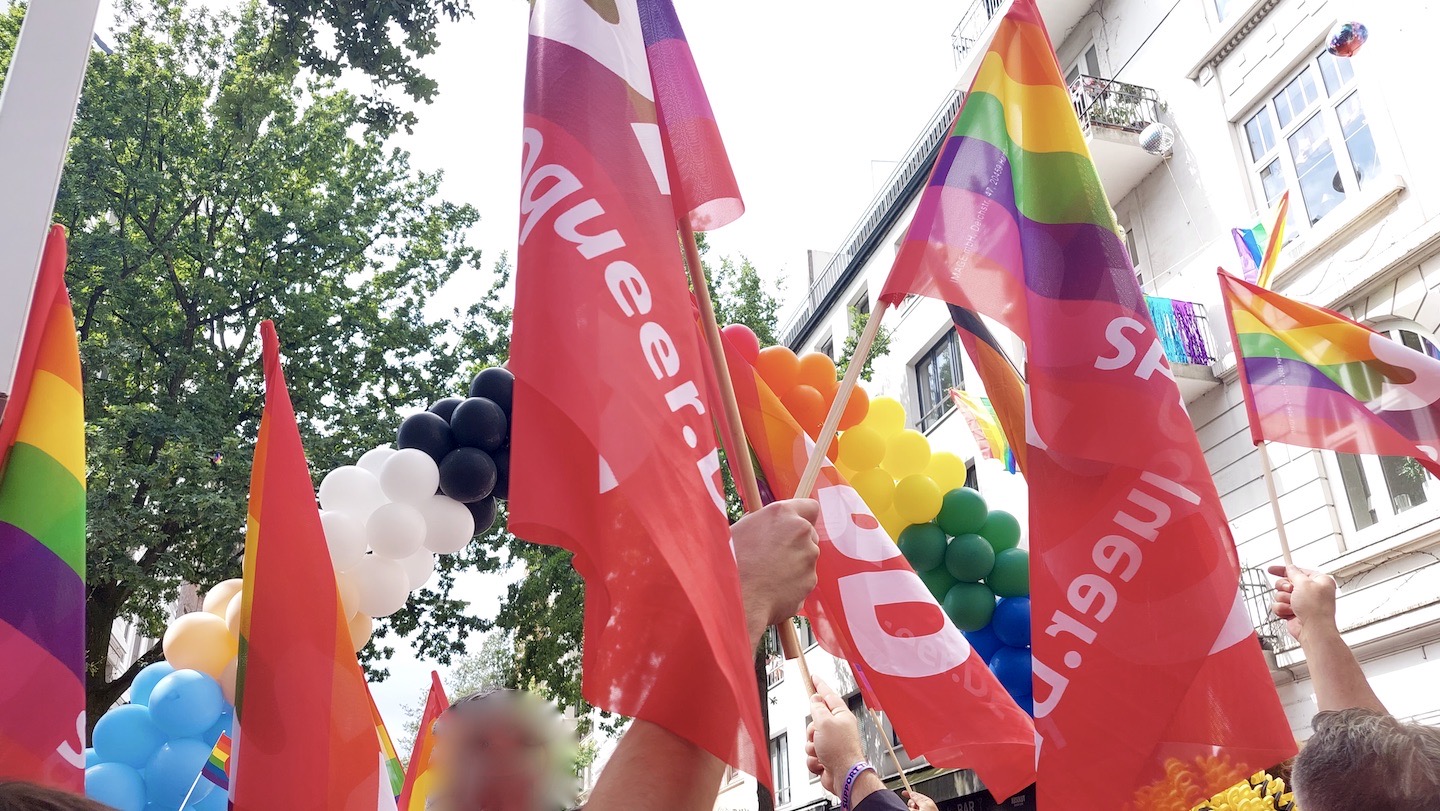Die beliebte Künstlerin, bekennende St. Georgerin und unentwegt für Gerechtigkeit kämpfende Parnass sagte: "Mir ist die Teilnahme am CSD - heute wie damals in den achtziger Jahren - sehr, sehr wichtig. Es gibt immer noch so viele ungelöste Probleme, darauf muss man doch aufmerksam machen!!!" Mit 50 Trucks und 116 Gruppen setzte sich der Umzug in Bewegung. Zwischen 200.000 und 250.000 Interessierte säumten die Wegstrecke, die schließlich am Jungfernstieg endete. Neben den politischen Forderungen wie zum Beispiel dem Selbstbestimmungsgesetz für Transmenschen reagierten die Veranstalter erstmals auch auf die aktuelle Situation der Klimaproblematik, indem die Trucks eine CO 2 Abgabe leisten mussten. Der Betrag fiel mit 1.360 Euro relativ bescheiden aus; da ist bestimmt noch Luft nach oben, wie es so schön im Politsprech heißt. Es freut sich die Loki-Schmidt-Stiftung, die den Betrag sinnvoll in das Projekt "Mein Baum- Meine Stadt" einbringt. BGB