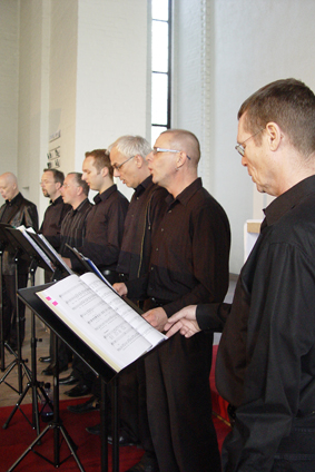 Ingo(schmunzelt): "Das ist 'ne Frage. Ja, ich denke, Glaube entsteht im Leben. Bei mir war es so, dass ich in der Jugend ein Außenseiter war, von der Klasse und meinem Umfeld her gesehen, und da fing das irgendwann an, dass ich an Gott, den Vater geglaubt habe und so kam ich einigermaßen heil durch diese etwas wirre Zeit. Und in meinem Alltag im Beruf ist es ja nun so, dass ich mit allen möglichen Leuten zu tun habe, es gibt auch Atheisten im Chor. Warum sollen die nicht mit uns singen dürfen? Wir unterhalten uns bei jedem Stück, das wir singen, natürlich über