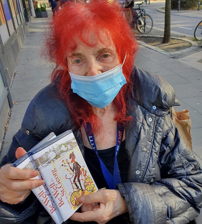 St.Georg ist ein Dorf. Und mit der lebhaften Peggy Parnass an einem ersten Hamburger März Frühlingstag im Gefährt über die Lange Reihe zu fahren, ist etwas besonders Schönes. Peggy erfährt Liebeserklärungen, freudiges Wiedersehen und Winken auf Schritt und Tritt. Klar, mit allen Regeln der Kunst und natürlich mit Maske und Abstand. Virtuelle Umarmungen, immer. Peggy ist im Dorf St. Georg fest verankert. Die vielgerühmte Journalistin, Autorin und Publizistin ist ein Teil des Stadtteils. Bekannt. Also linke Seite runter, in der Langen Reihe, rechte Seite wieder hoch. Im Gefährt. Der rote Haarschopf ist unverkennbar. Zu Feinkost Läufer, zu Peggy's Lieblings BUDNI, zum Kiosk 87, Lesestoff