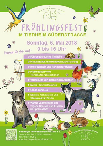 Nicht weit entfernt von St. Georg befindet sich in der Süderstraße Hamburgs bekanntestes Tierheim. Das Tierheim Süderstraße lädt am Sonntag den 6. Mai von 9 bis 16 Uhr zur größten Tierschutzveranstaltung des Nordens ein. NDR-Moderatorin Theresa von Tiedemann und Hamburg1-Moderator Marco Ostwald begleiten die bunte Veranstaltung. Gäste können sich neben Führungen durch