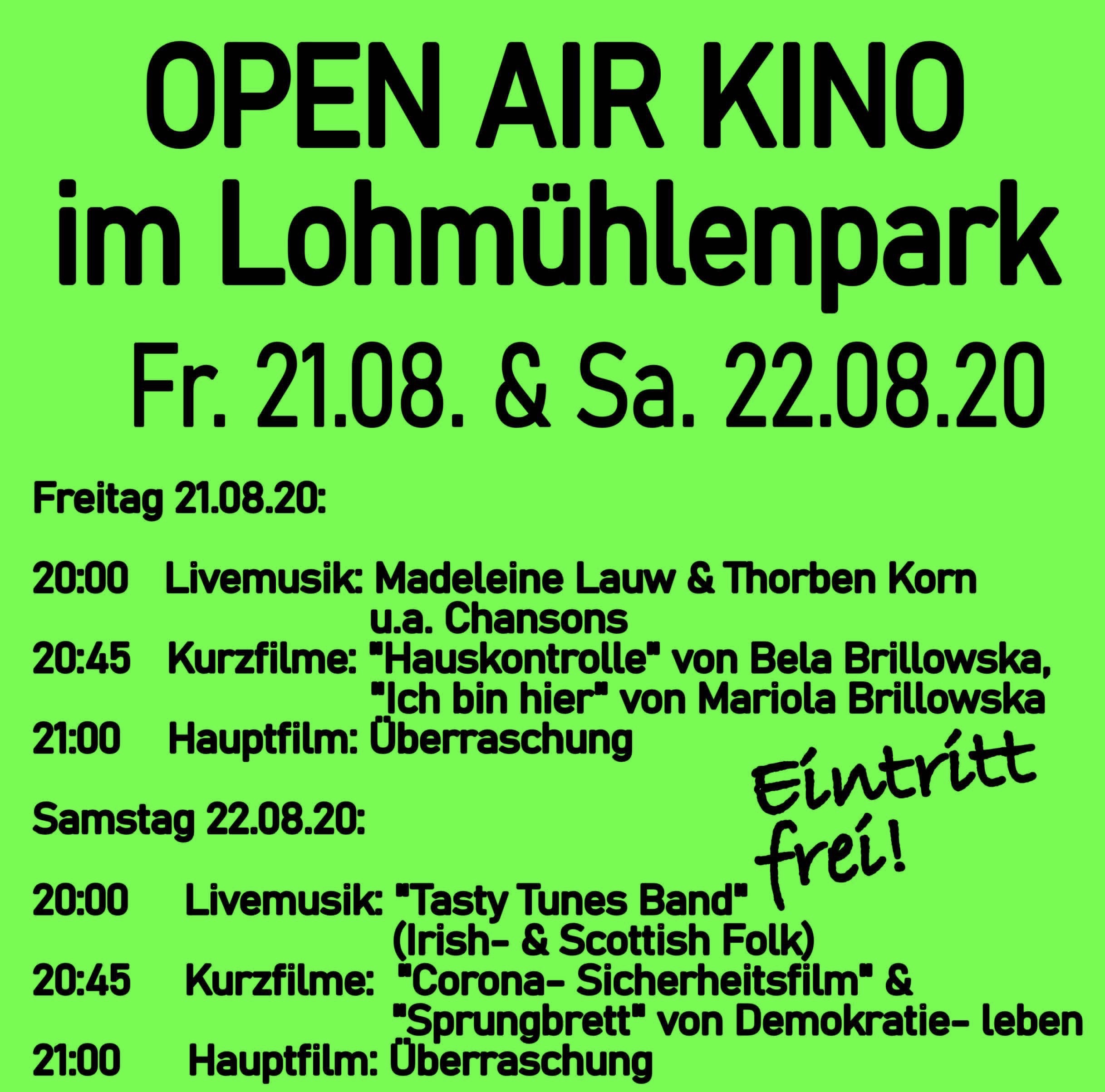 OPEN AIR Kino am 21. und 22. August im Lohmühlenpark