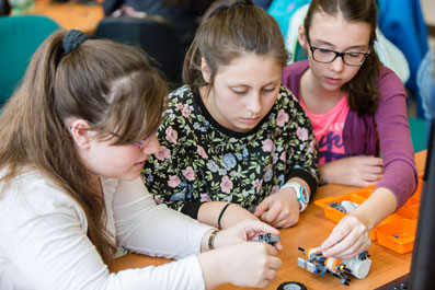 Und das gab es zu erleben: 3D Modelling und 3D Printing - Bau einer Smartphone-App - Wie ein Hörspiel entsteht - Packaging Technolgy oder Verpackungsentwicklung und –prüfung im Alltag - Der elektronische Würfel - Faszination Fliegen. Geschichte – Physik – Natur - Klänge aus Bewegung – das Luft-Xylophon- Roberta-You can dance! / Ein Roboter lernt tanzen! - Schweißen für Mädchen - Sehen im Dunkeln – Unsichtbares Licht - Solarboot - Spielend Programmieren - Webseiten-Olympiade - Wir löten ein LED-Blinklicht.