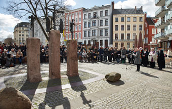 Gemeinsames Beten in der Öffentlichkeit und unter freiem Himmel hat in Hamburg St. Georg Tradition! So jährt sich diese Initiative der Evangelisch-Lutherischen Kirchengemeinde St. Georg-Borgfelde mit der katholischen Domgemeinde St. Marien, der African Christian Church, der Pilgergemeinschaft St. Jacobi und der Centrum Moschee bereits zum 10. Mal. Ein Beweis für ein tolerantes, religiöses und weltoffenes Miteinander. Unter dem Motto "Weggerissen aus dem Lande der Lebendigen" findet an der mittelalterlichen Kreuzigungsgruppe vor der St. Georgskirche am Hauptbahnhof die interreligiöse und ökumenische Kreuzwegandacht am Karfreitag, 25. März um 14.00 Uhr statt. Es geht um die Leidensgeschichte Jesu, vorweggenommen in Gedanken aus dem Jesajabuch, wiederholt in zahllosen Schicksalen von Menschen, die voll Verzweiflung und Hoffnung nach ihrer